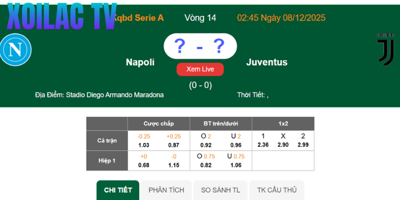 Trận đấu giữa Napoli và Juventus vào ngày 08/12 xoilac đánh giá là bài test bản lĩnh thực sự cho tham vọng của cả hai đội bóng. Với lợi thế sân nhà và lối chơi phòng ngự phản công sắc sảo, Napoli được dự đoán sẽ giữ lại 3 điểm trọn vẹn trong một trận cầu chặt chẽ.